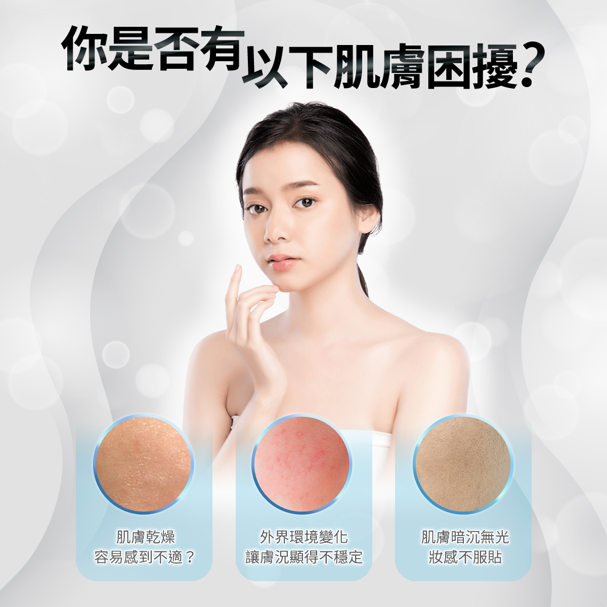 ✦  勻亮透潤:傳明酸,維持膚色均勻,展現自然光澤