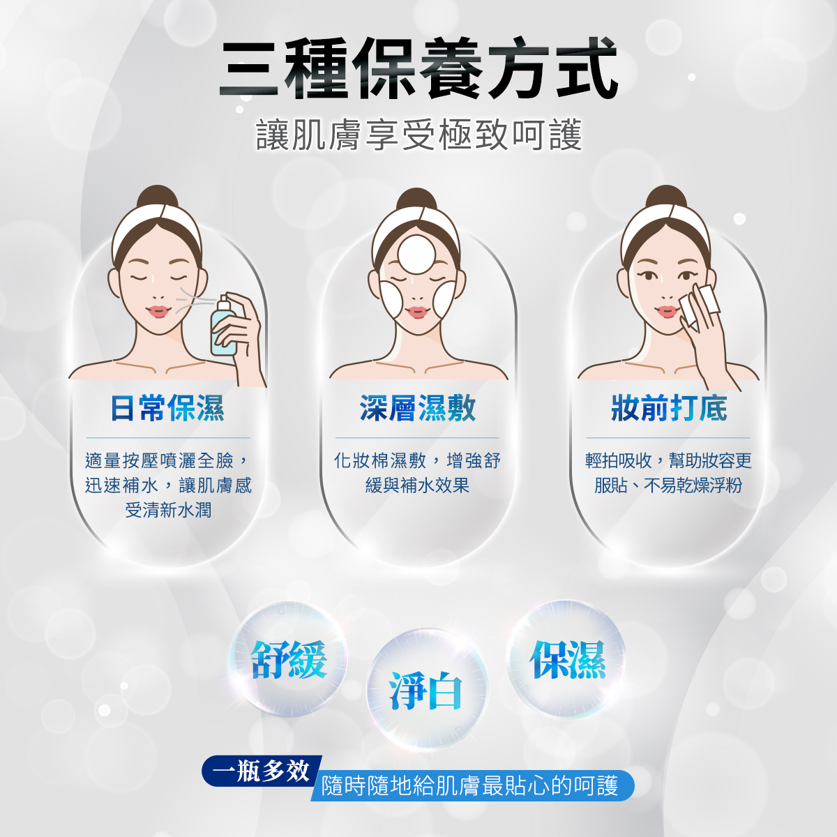 ✦  舒緩保濕:維他命原B5、甘草酸鉀、洋甘菊純露,溫和保養,舒緩乾燥不適